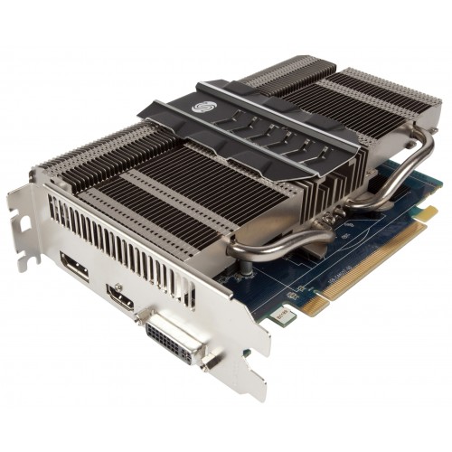Sapphire r7-250 - Silent heatsink only + extra Low-profile bracket , single slot design , support 3x displays - UEFI BIOS support , 28nm , 1Gb 128bit 4 channel GDDR5 , 8RoPs , 73.6Gb/sec memory transfer ; 384 stream processors , 24 texture unit , 768 GigaFLoPs, core clock : 800mhz with boost ; memory : 4500mhz , miniDP+ miCroHDMi+ DVi , with DVI to VGA / Mini-DP to DP / miCroHDMi to HDMi adapter , 28nm - retail pack