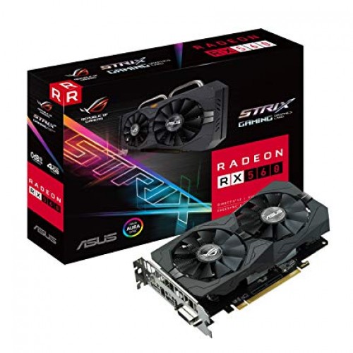 Asus ROG-STRIX-RX560-4G-GAMING - 4Gb - Aura sync RGB Lighting ( front+side ) with 6 colors scheme , DirectCU 2(ii) with dual fan design ( iP5X-certified dust resistant ) + reinforcement frame + 10mm copper heatpipes , support 0dB silent mode , DIGI+ VRM with 4+1-phase Super Alloy Power ii , GPU Tweak II with Xsplit Gamecaster , support LiquidVR + XConnect ( external GPU solution for NB ) , Freesync ready , XDMA CrossFire ( no external connectors required ) , TrueAudio HDMi with dedicated PAP ( Programmable Audio Pipeline ) to reduce CPU load , 14nm , 128bit 4 channel DDR5 , 16RoPs , 112Gb/sec memory transfer ; 2611 GigaFLoPs, 81.6GT/s texture fill rate , 1024 stream processors , 64x texture unit , core clock : 1275/1285mhz ; memory : 7000mhz , DVi+ HDMI+ DisplayPort ( upto 6x displays via MST hub ) - require 6pin power connector - full retail pack