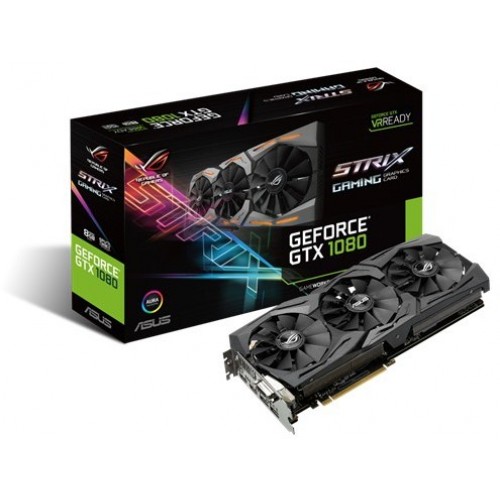 Asus STRiX-GTX1080-8G-gaming - Aura RGB Lighting ( front+backplate ) with 6 colors scheme , DirectCU 3(iii) with tripple fan design + back-sided heatsink + 10mm copper heatpipes with DCH (Direct Contact Heatpipes) , support 0dB silent mode , DIGI+ VRM with 8+2 phase Super Alloy Power ii , 16nm , 3-way SLi support , Pci-E 3.0 16x , support Adaptive Vertical Sync , support 4xdisplay , FXAA+TXAA ; 8Gb/8192mb 256bit DDR5X , RoPs : 64 , 320Gb/sec memory transfer , 2560 cuda cores ( pixel shader engine + vertex pipelines ) , 8228GFLoPS , 257GTexels/Sec , 160x TMUs , core clock : 1607/1733mhz ; memory : 10010mhz , free 1-year premium XSplit Gamecaster , dvi+ HDMi+ VR-HDMi + 2x DP