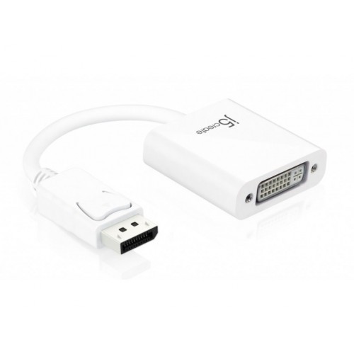 J5create JDA134 DisplayPort to DVi adapter 90mm cable - support upto Full HD 1920x1200 / 1080P @60Hz , white , for MAC or PC - retail pack